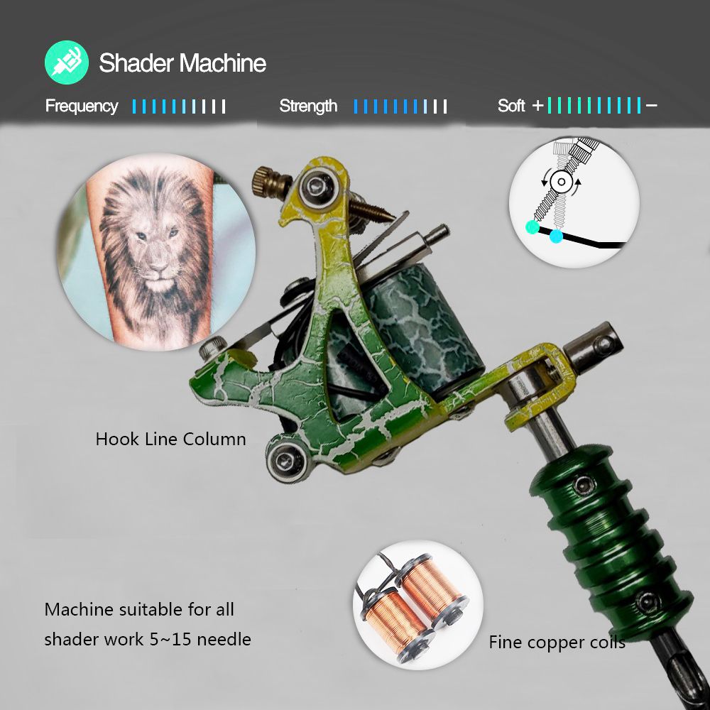 - Tattoo machines for lining and shading, Cast iron tattoo machine 10 wrap coils. Made of superior composite material, the spring is high-elastic and anti-fatigue for long-time working, made of Cooper coils