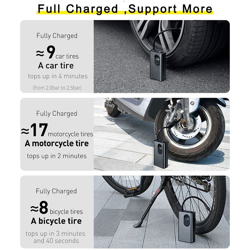 1X Baseus Car Air Compressor Electric Tyre Inflator Pump With LED Lamp For Motorcycle Bicycle Tire Portable Inflatable Pump