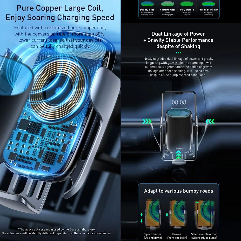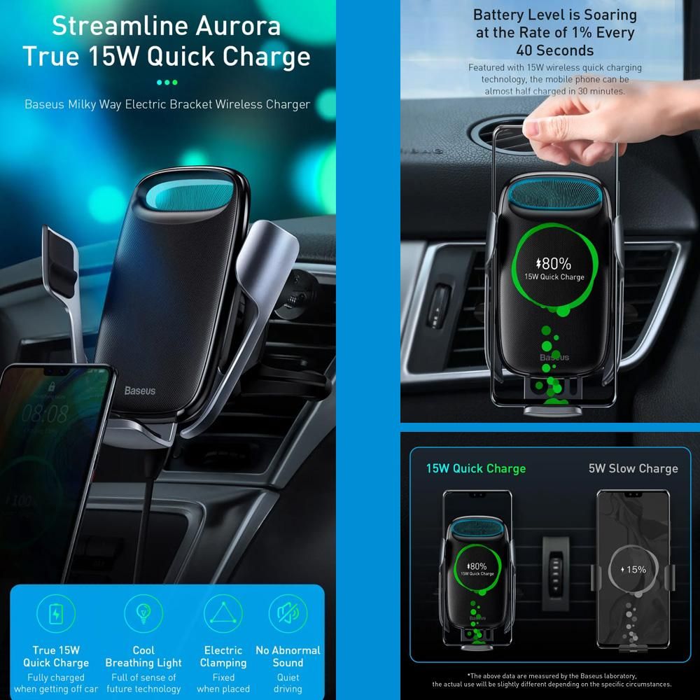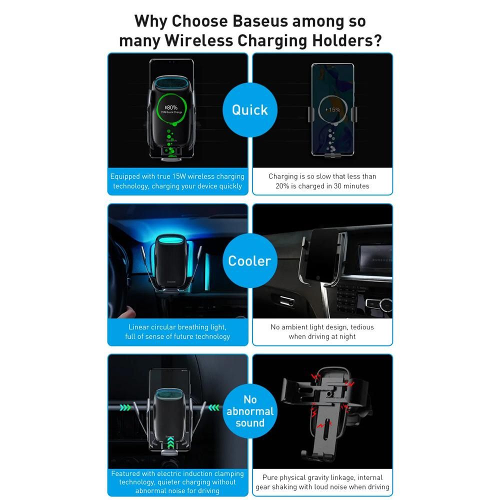 Buy Baseus Wireless Car Charger 15W Fast Charging Auto-Clamping Car Mount LED Intelligent Auto Lock Electric Bracket Stable Quick Charge Phone Holder Windshield Dash Air Vent Phone Holder Compatible with iPhone 12/11/11 Pro/11 Pro Max/Xs MAX/XS/XR/X/8/8+ Sams in Nigeria