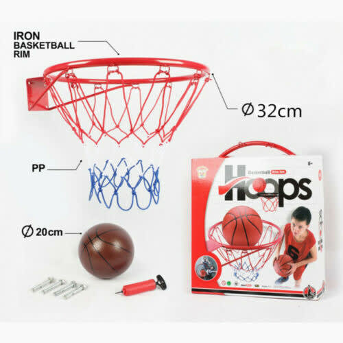 WALL HANGING BASKETBALL HOOP RIM NET & BASKETBALL,