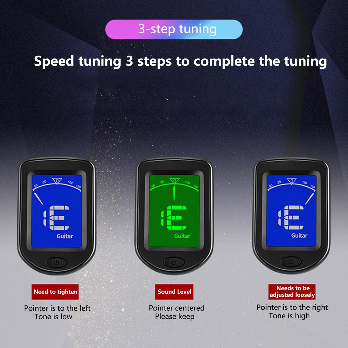 With high precision and multiple modes for fast tuning, this guitaris very sensitive and has a wide range of applications for guitar, bass, ukulele, violin and many other instruments.