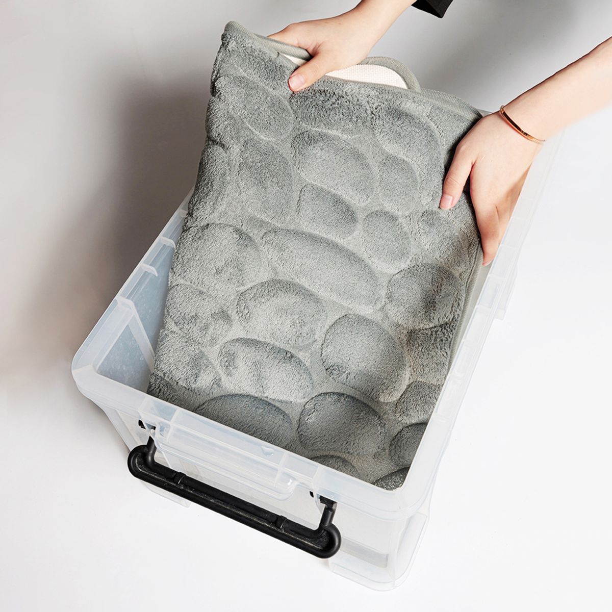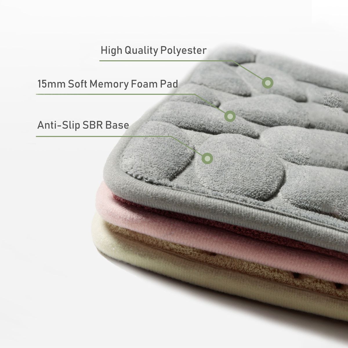 [Soft Material]The bath mat is made of super-soft polyester, non-woven fabric, and an SBR base which can give you a comfortable feeling when standing on it.