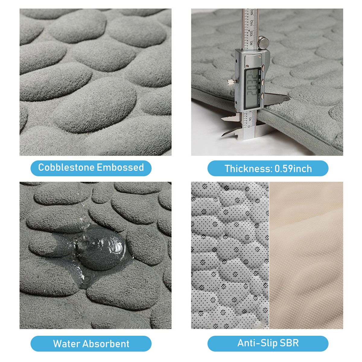 [Water Absorbent]0.59inch thick bath mat allows the liquid held in this mat to dry quickly and provides excellent absorbency to keep your bathroom dry.