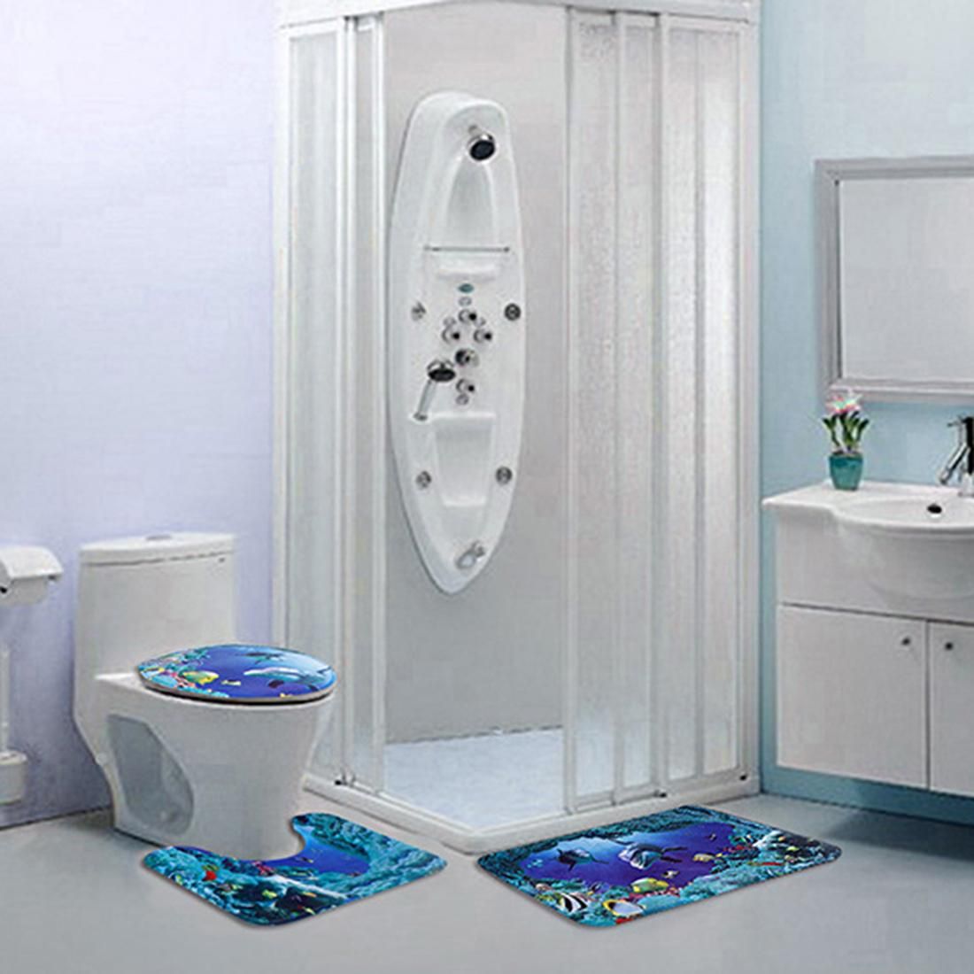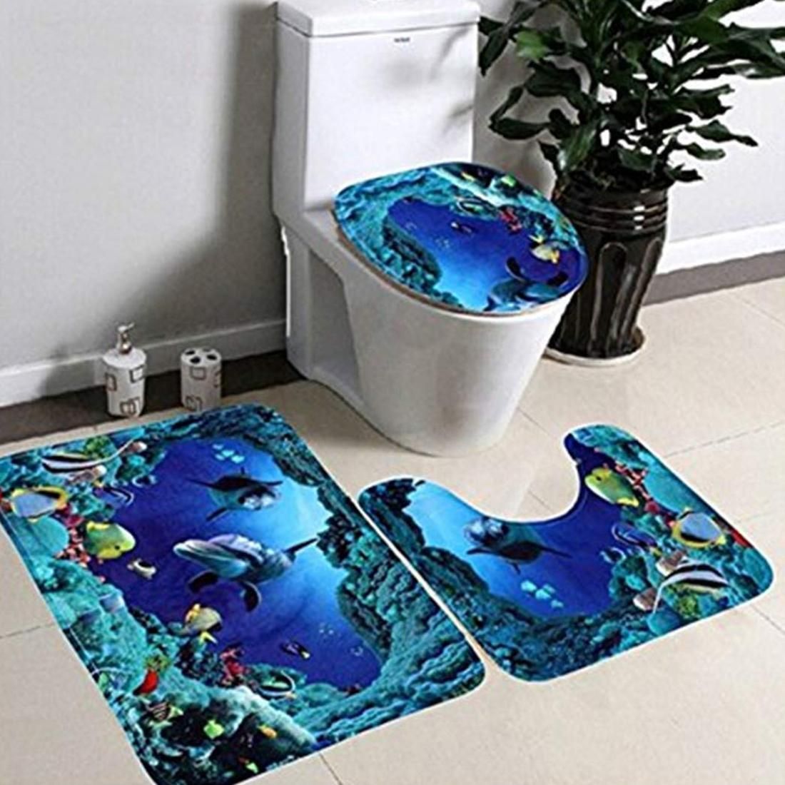 Bath Rug Set, 3-Piece Mat Antislip Bath Rug + FloorBeautiful underwater world, brighten up your bathroom.