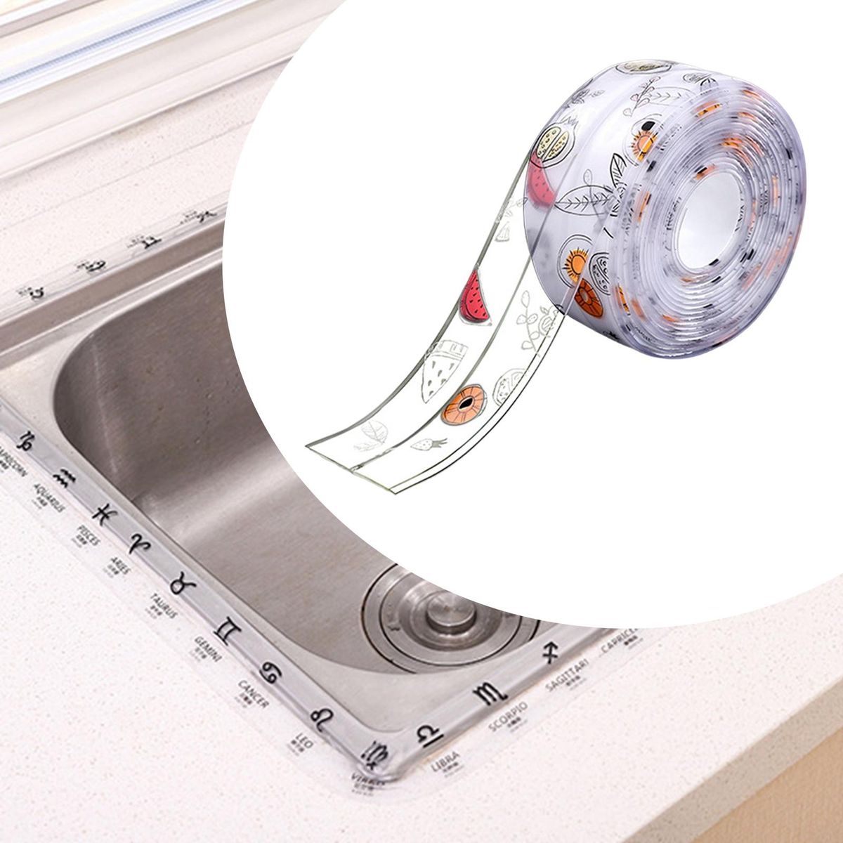 【Design】: Wall sticker sink edge tape with creases in the middle, linear design for free tortuous.
