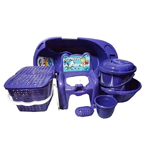 Cherish Baby Bath Set is a unique bath set for your baby bathtime. This product makes bath time fun for your baby and gives you, the mother rest of mind as everything needed is at your beck and call. The bath tub is roomy enough for your baby, the bowl for keeping hot water, the bucket with a lid for keeping cool water, the cup, the soap can, the basket for storage, potty, and of course the potty chair which serves two purposes.