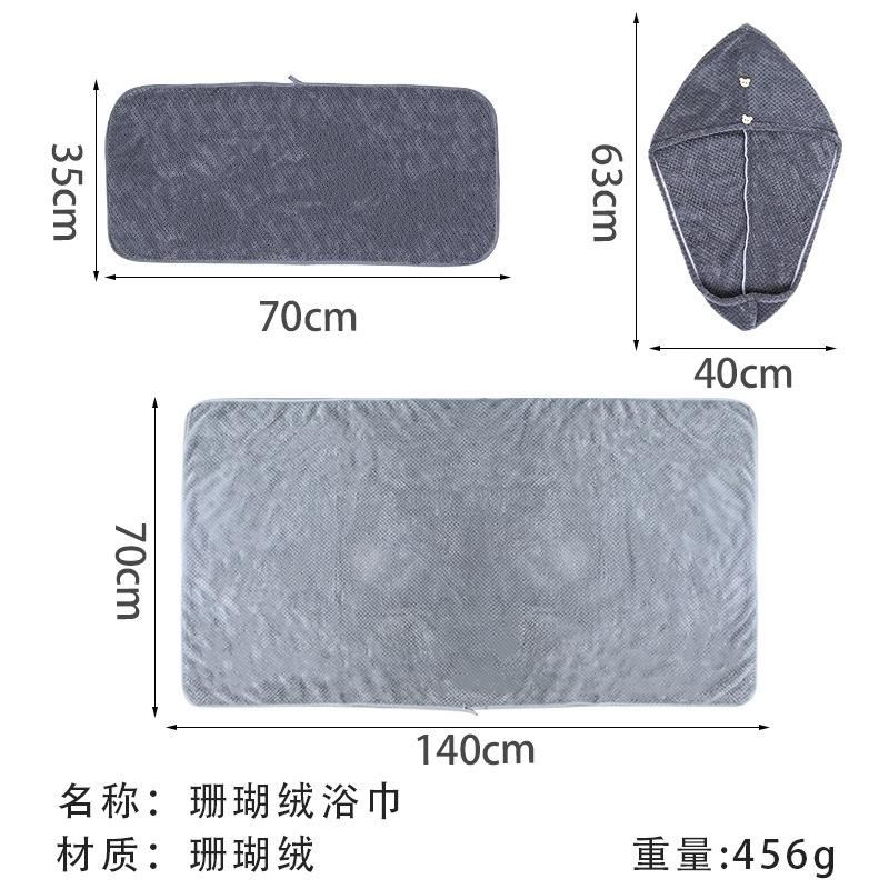 Color: Gray, Beige, Gray Bath Towel + Towel + Shower Cap, Beige Bath Towel + Towel + Hair-Drying Cap, Lotus Root Pink Shower Cap, Beige Shower Cap, Gray Shower Cap, Dark Gray Towel, Beige Towel