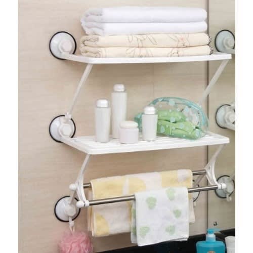 Beautiful Space and Convenient LifeSize:18 inch x 9 inchDouble-Layer and Double-rod RailNo Drilling,Moveable,The Suction Cup Adopt a New Technology to Result in Lasting and Firm Suction.Easy to install