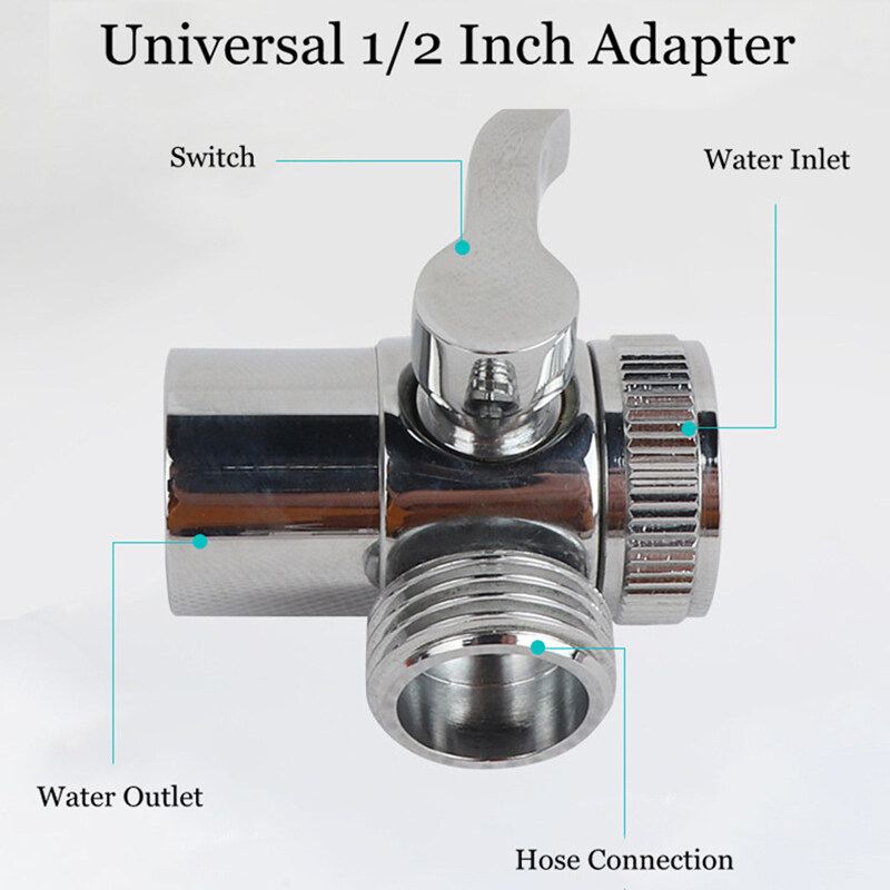 2. 3 Way Faucet Diverter Valve - The faucet diverter is made of sturdy solid brass metal material, made in One-piece. Polished chrome, wear-resist, high-quality and built-to-last. Designed with a large water flow without flow restriction. A metal handle lever turns smoothly to convert water flow between handheld shower and faucet aerator.