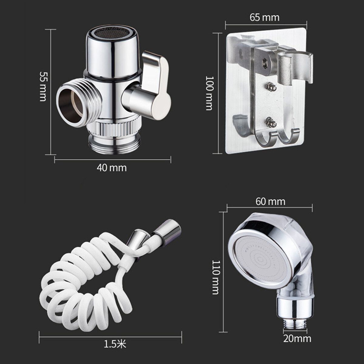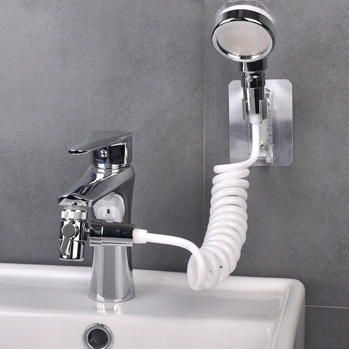 1. Functional Sink Hose Sprayer Set - Comes with a set of handheld shower head, faucet diverter valve, hose and shower head holder bracket. This faucet sprayer set is multi-purpose and perfect for hair washing, pet bathing, buckets filling, elderly care, a newborn baby rinsing and more to work effectively. Connects to existing bathroom or utility sink for easy faucet spray washing. connects to SINK FAUCETS with Removable Aerators, not fits for Shower and Shower Heads.