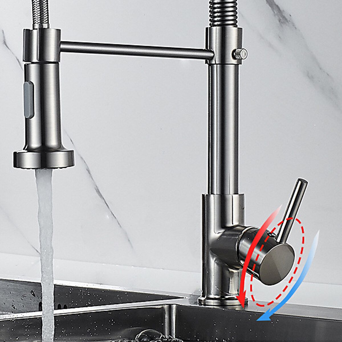 Bathroom Faucet 360° Rotating Chrome Copper with Pull Down Hose Spray Single Handle Lever Hot And Cold Tap Water Basin Kitchen Sink Wash Home