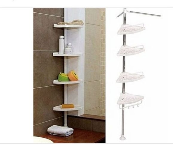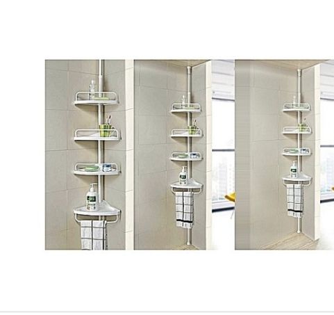 Create space in your bathrooms with this Corner Shelf. Made from lostg lasting materials such as ABS plastics and Stainless steel, it features four perforated trays each holding up to 3kg. It is the ideal space-saving rack for as it is uniquely designed to occupy no floor space, thus creating more storage space in your bathroom. It also included three hooks for hanging items, and guard bars to prevent items from falling off the tray. Adjustable 185cm - 310cm Product Information Colour Si