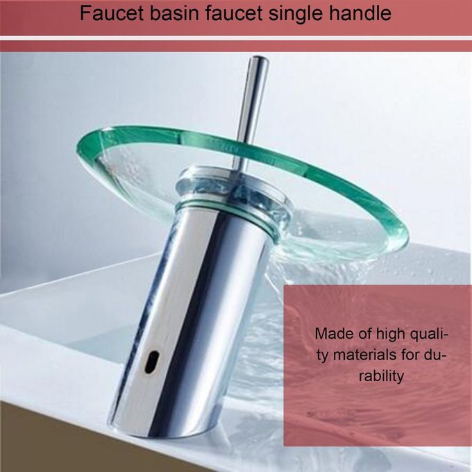 1 x Solid Glass Waterfall Round Basin Faucet Basin Mixer Tap Single Lever