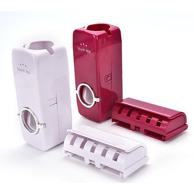 Get this 2 piece bundle toothbrush holder and toothpase dispenser (white and rose red) as shown on screen. Convenience as toothbrush push the button,get out toothpaste. Economic automatically dispenser a certain amount of toothpaste (1g around), and use the last drop of toothpaste.Hygienic No need of touching toothpaste tube, hygienic and friendly environment, fit for any environment, no electric, no protection cost and no breakdown. Lead to high rank life culture, improve and beautify the environment of bathroom.