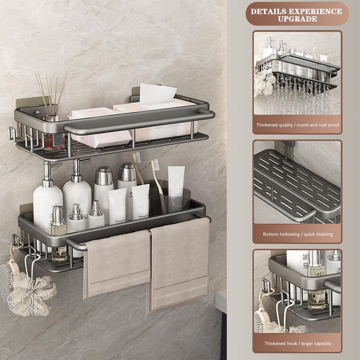 Our bathroom shower rack is made of high-quality space aluminum material, which is corrosion-resistant, not easy to rust and break, and is strong and durable.
