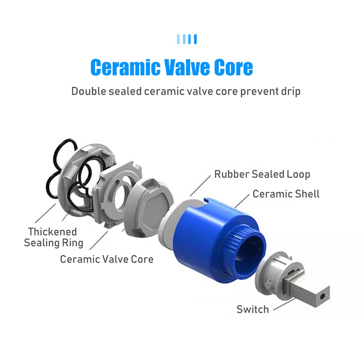 [Ceramic Valve]Adopts double-sealed ceramic valve core design, more out of the water flow, never leak.