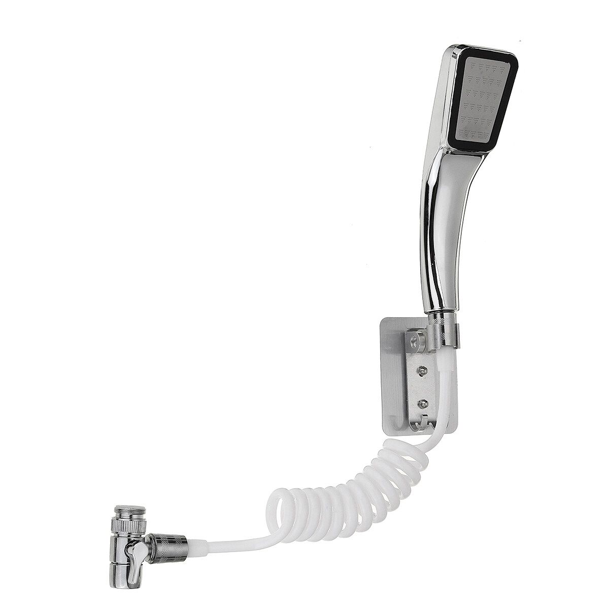 - Handheld Shower Holder: Free holder is available. Height of shower head bracket can be adjusted easily for convenient use.The toilet tank mounted holder can be separated as the wall-mounted shower holder.