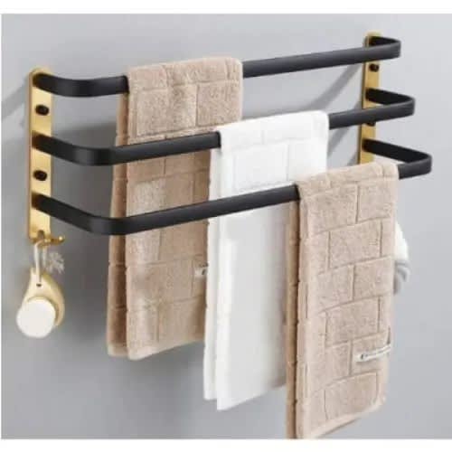 Buy Bathroom Towel Hanger With Hooks - Black in Nigeria