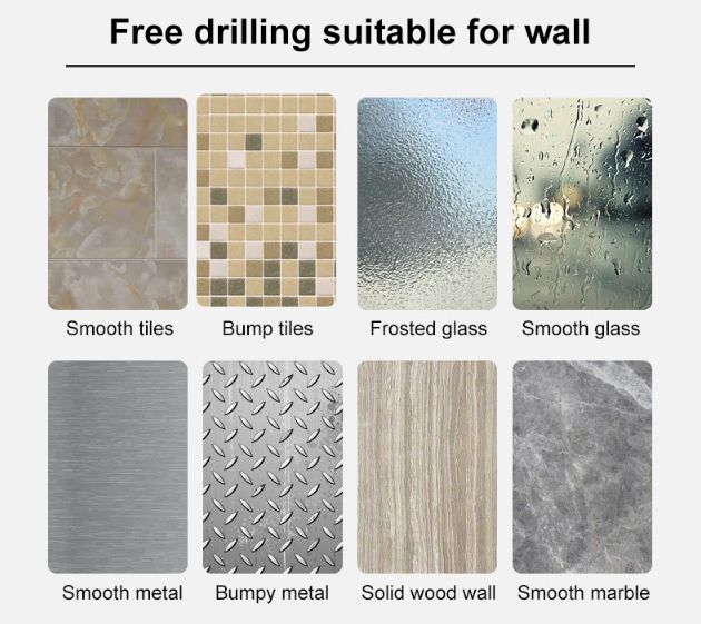 Please stick it on a smooth and dry surface such as tile, marble, glass, wooden surface, metal surface, etc., then press for several seconds.