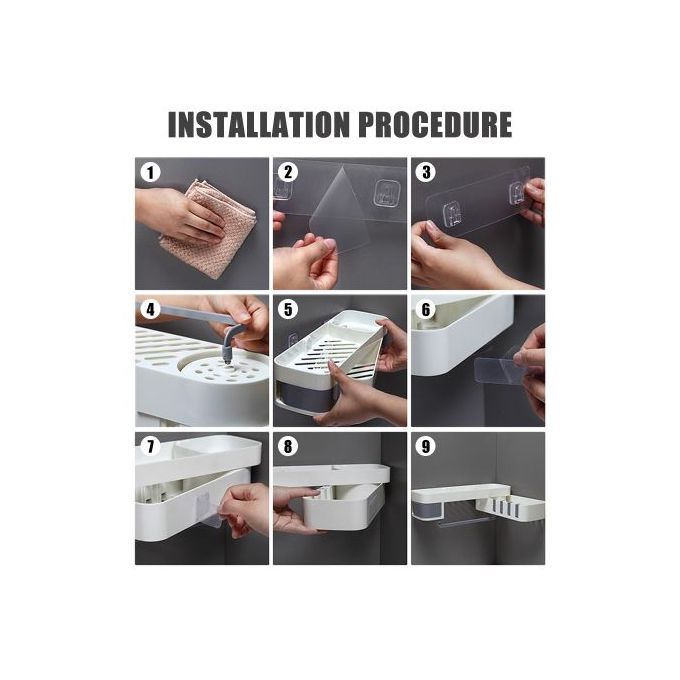 The bathroom shelf is made up of high-quality PP materials, and it can sure to last for way longer time use. The bathroom storage shelf is suitable for placing a variety of bathroom s. The powerful adhesive sticker makes sure to bearing 11 lbs, so you don't have to worry about it will be falling. The storage shelf can make your home look more clean and neat.