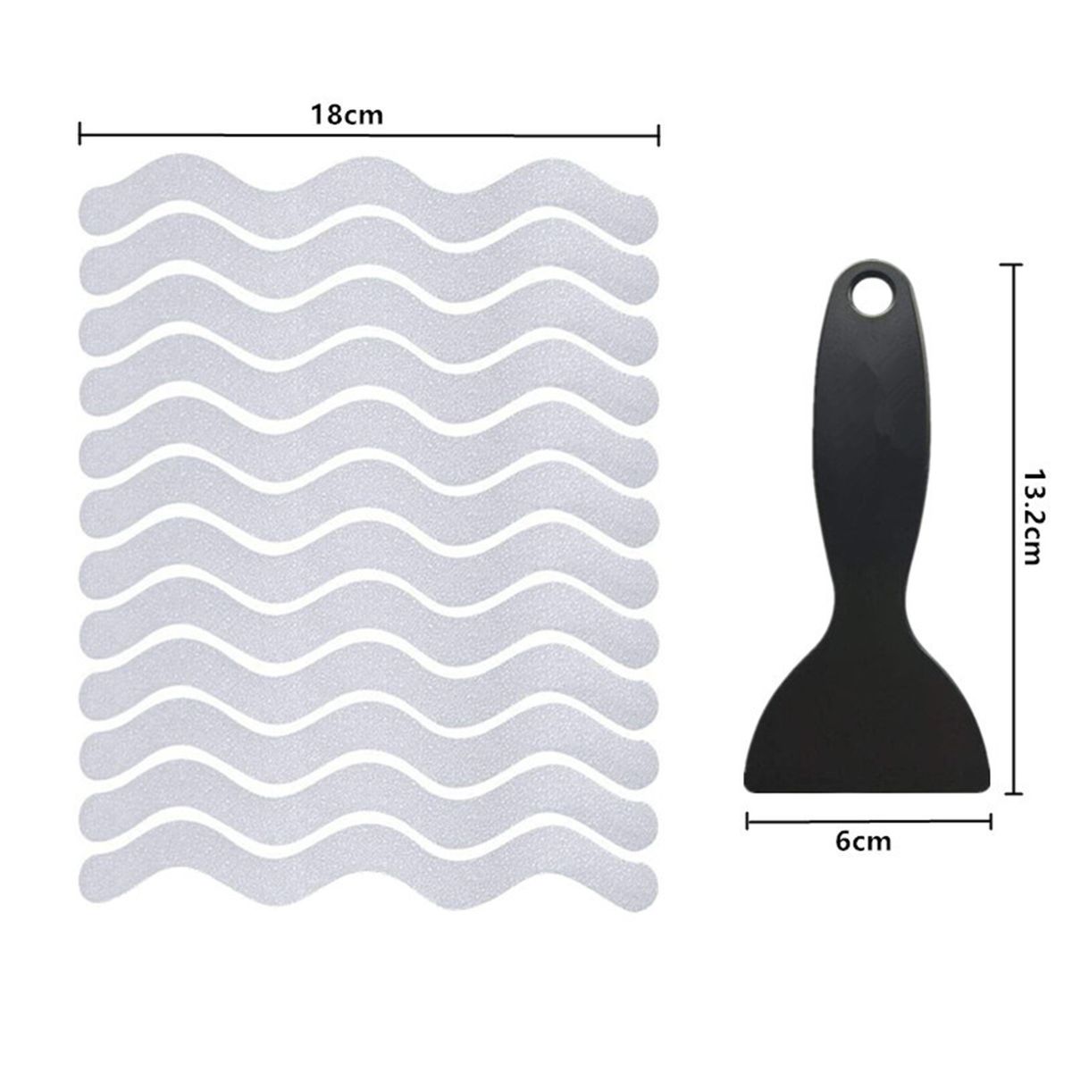 Great Value: 24 PCS bathtub stickers, a black scraper. Individual tread size: 7 quot; long x 0.6 quot; wide. Scraper size: 5.3 quot; long x 2.4 quot; wide.