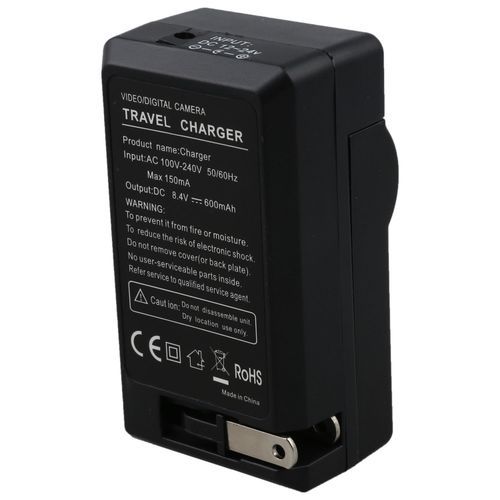 Charger is designed with a foldable A/C plug that charges your camera / camcorder battery anywhere in the world.