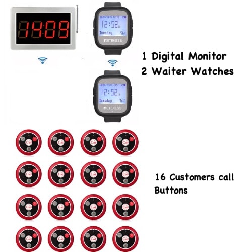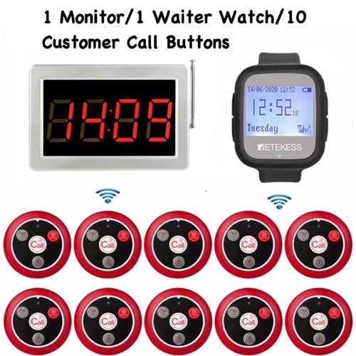 Waiter Wristwatch/10 Customer Wireless Service Call System.1 Waiter Watch/10 Call Buttons: