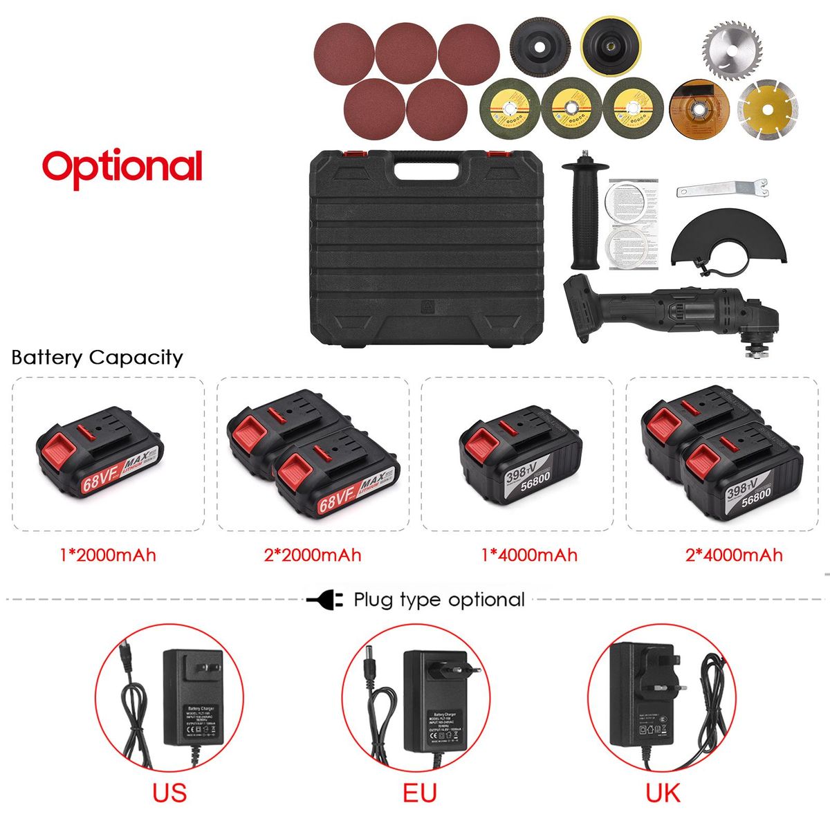 Buy Battery-operated Electric Angle Grinder Portable Lithium Battery Grinder Machine Handheld Battery Grinder Tool with Li-ion Battery & Charger 2-Position Handle with Disc Charger & Carrying Case Kit for Metal Wood Cutting Grinding Polishing in Nigeria