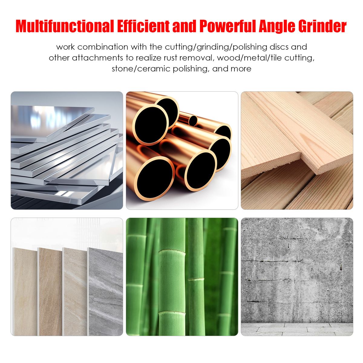 Multifunctional Efficient and Powerful Angle Grinder: work combination with the cutting/grinding/polishing discs and other attachments to realize rust removal, wood/metal/tile cutting, stone/ceramic polishing, and more, the compact angle grinder can reach a high rotating speed of 9000RPM to get the job done with high efficiency.