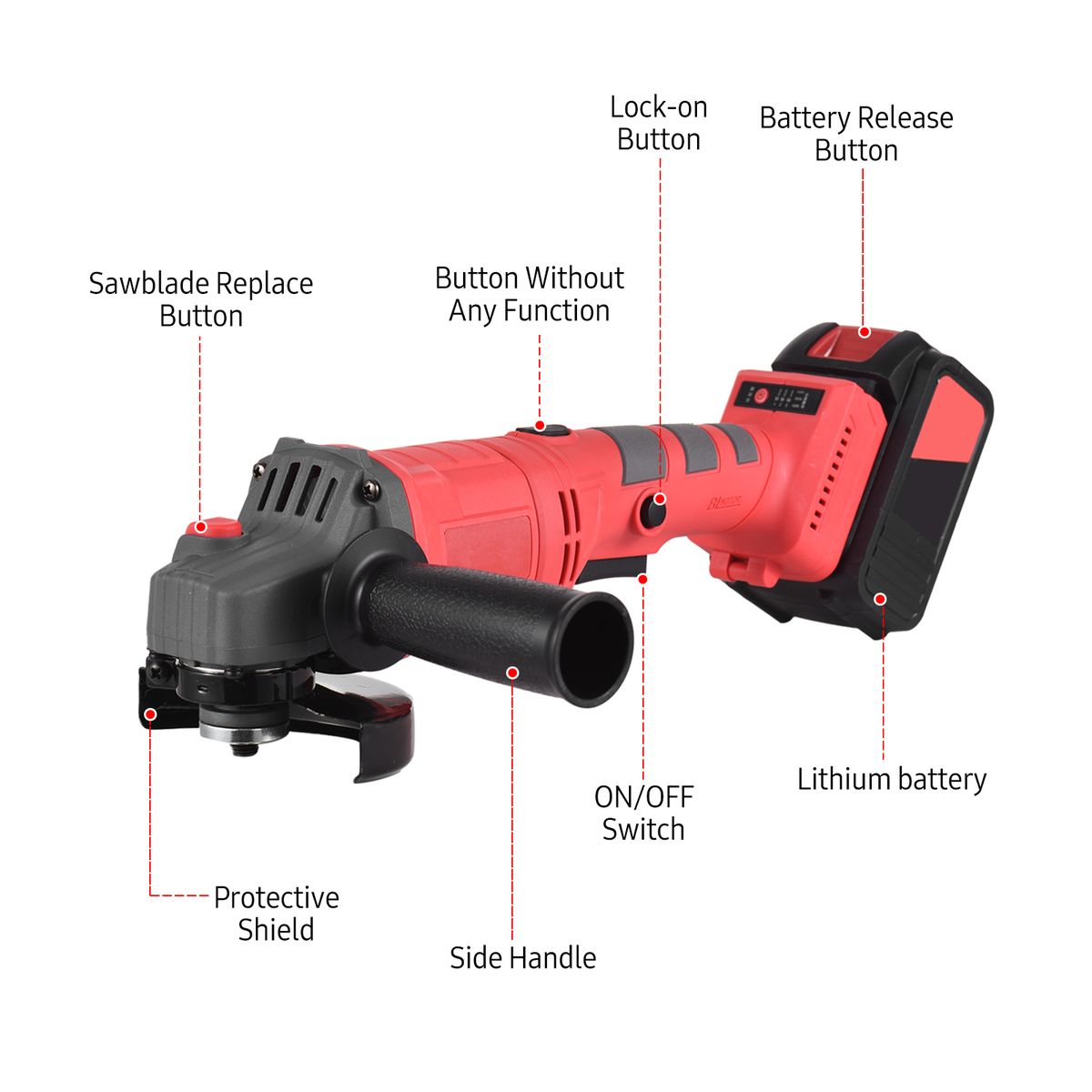 Battery-operated amp; Portable: the cordless angle grinder come with large capacity li-ion battery, get rid of cord mess, comes with a premium quality tool box for conveniently carrying around.