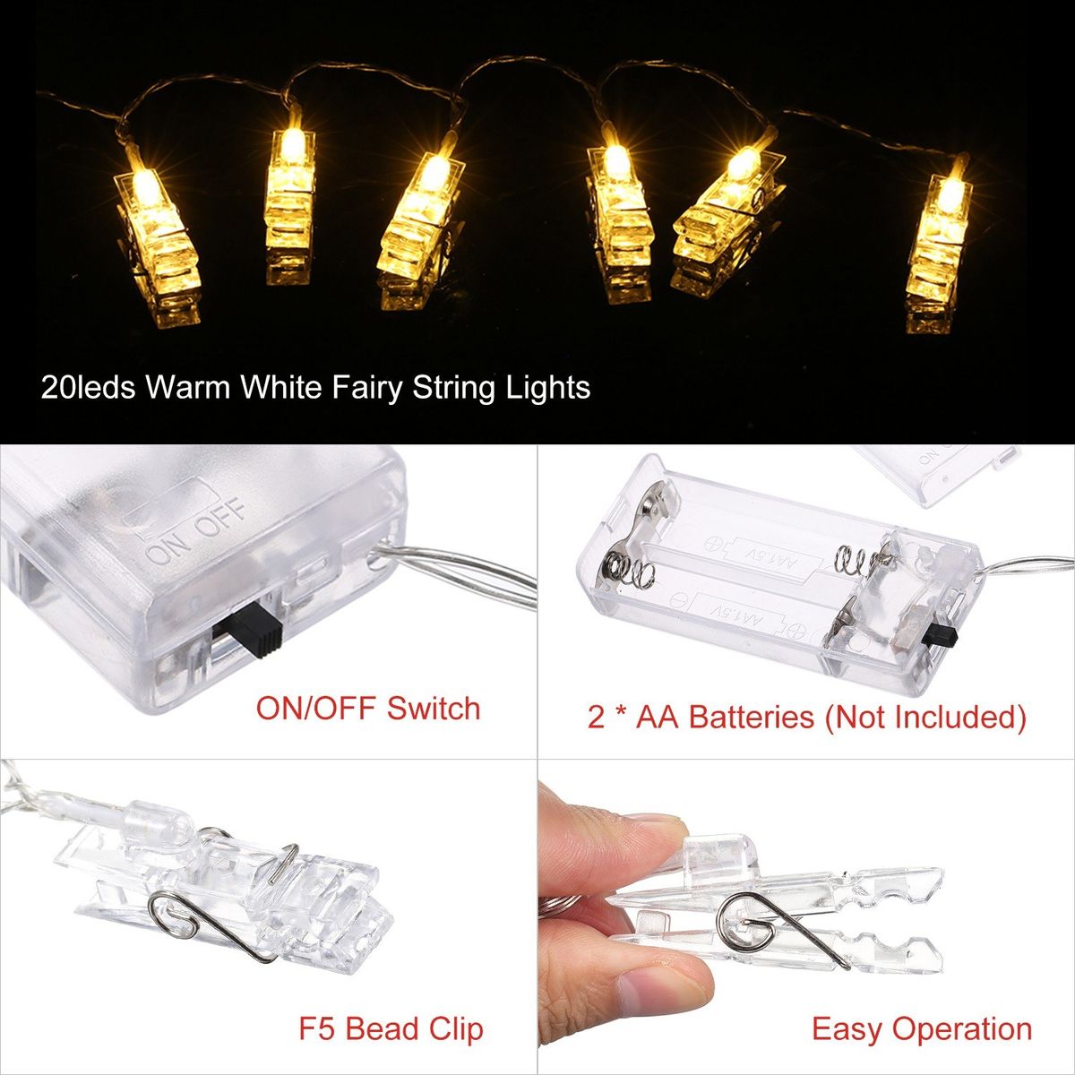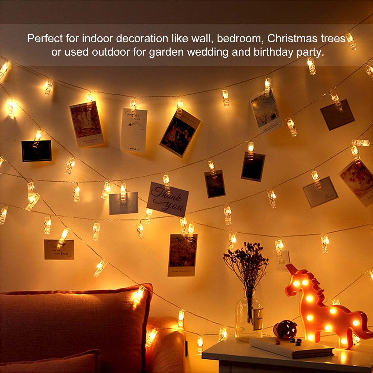 You can use this string lights with photo clip anywhere for hanging photos, artworks, light weight display and more. Perfect lighting decoration for living room, galleries, office and birthday wedding party.