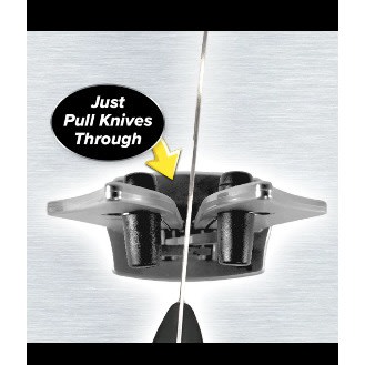 Razor sharp knives in seconds!Ultra-hard tungsten carbide sharpenersHone, sharpen & polish knivesDurable constructionEasy to useSimply pull knives through!Sharpens:Japanese knivesChef's knivesSerrated knivesBoning knivesParing knivesAnd more!Details:4-5/8"W x 3"D x 6-1/2"HMetal