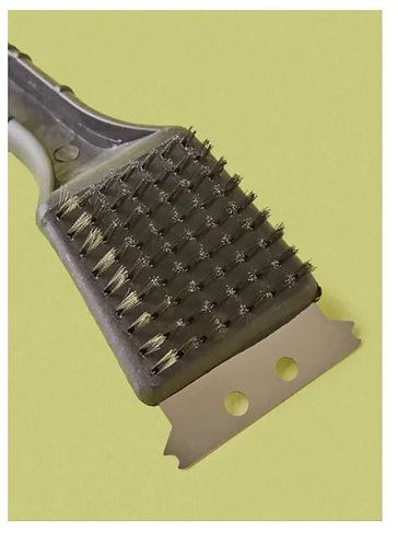3-in-1 bristle head rotating up to 360-degrees makes the BBQ brush flexible enough to fit between the grill grates to clean both the top and sides