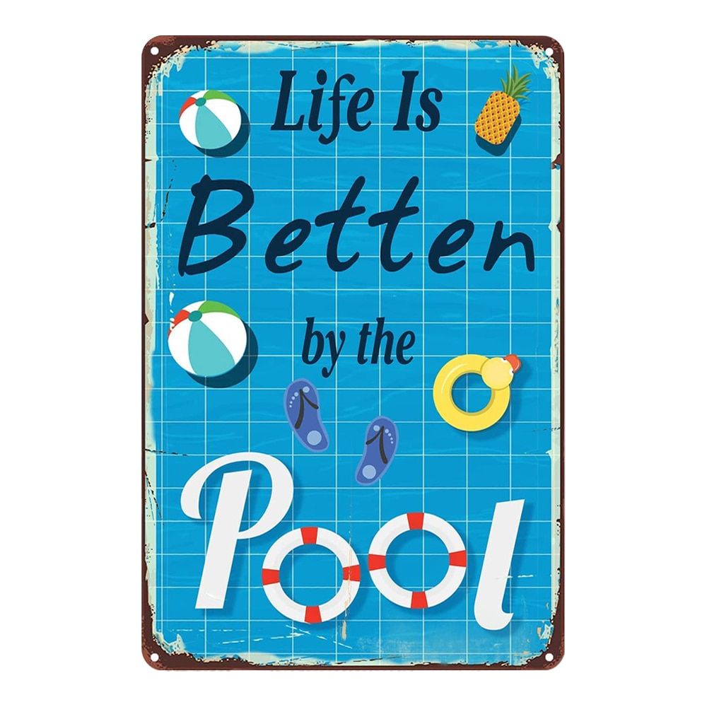 1X Beach Pool Rules Wall Metal Posters Tin Signs No Swim No Running Warning Text Public Pool Beach Wall Signs Shabby Plate Poster