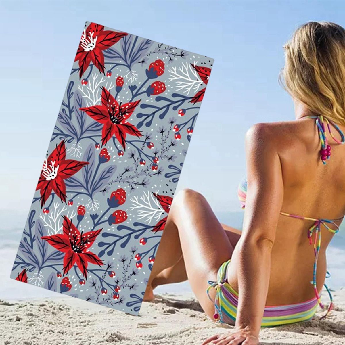 Material: Beach Blanket is made of Microfiber, skin friendly and soft, silky, absorbent, quick drying, Strond and breathableDesign: Beach towel is double sided fleece design, smooth and fit the body, stylish and the print is clear. Applications: Can double as a beach towel or a beach blanket. it's your choice for outdoor, travel, swimming, camping, practising yoga, surfing or dipping etc.Portable: 160x80cm, thin, lightweight and portable,convenient to carry, portable to avoid wet and cold on the beach.Eye catching: Unique designed beach mat will make you stand out on the beach in the sun, You can also use it as a background for photos and take some nice photos