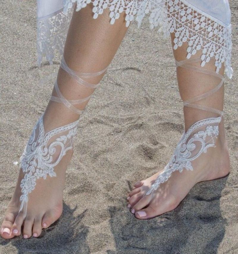 1 * Beach Wedding Shoes For Women White Ivory Lace Appliques