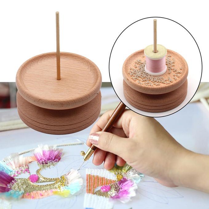 bead bowl spinner;bead stringing tool bead spinner kit;weaving beads knitting tray bead loader;wooden bead loom beading board organizer;jewellery craft bead holder tool wooden;DIY bead jewelry making kit jewellery craft