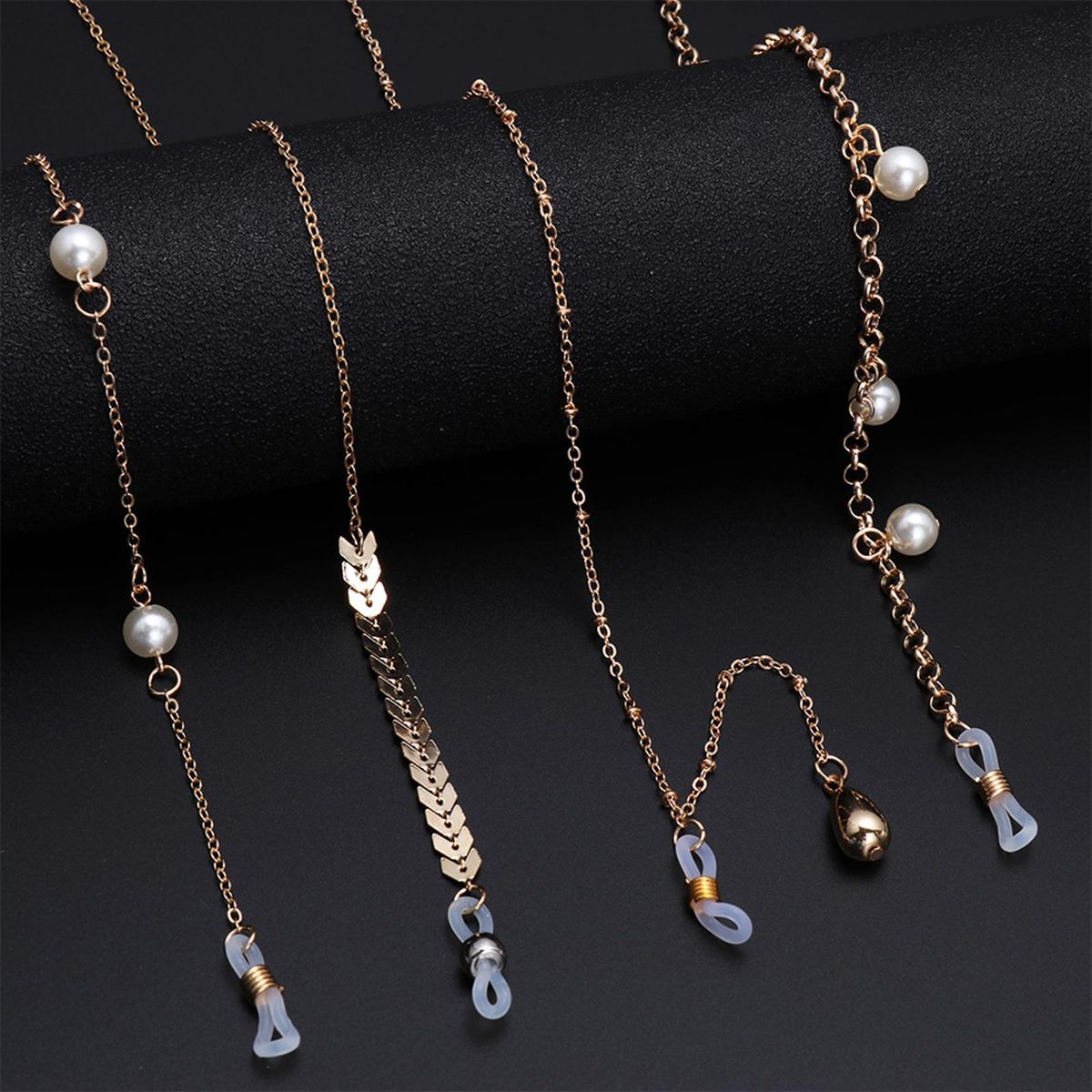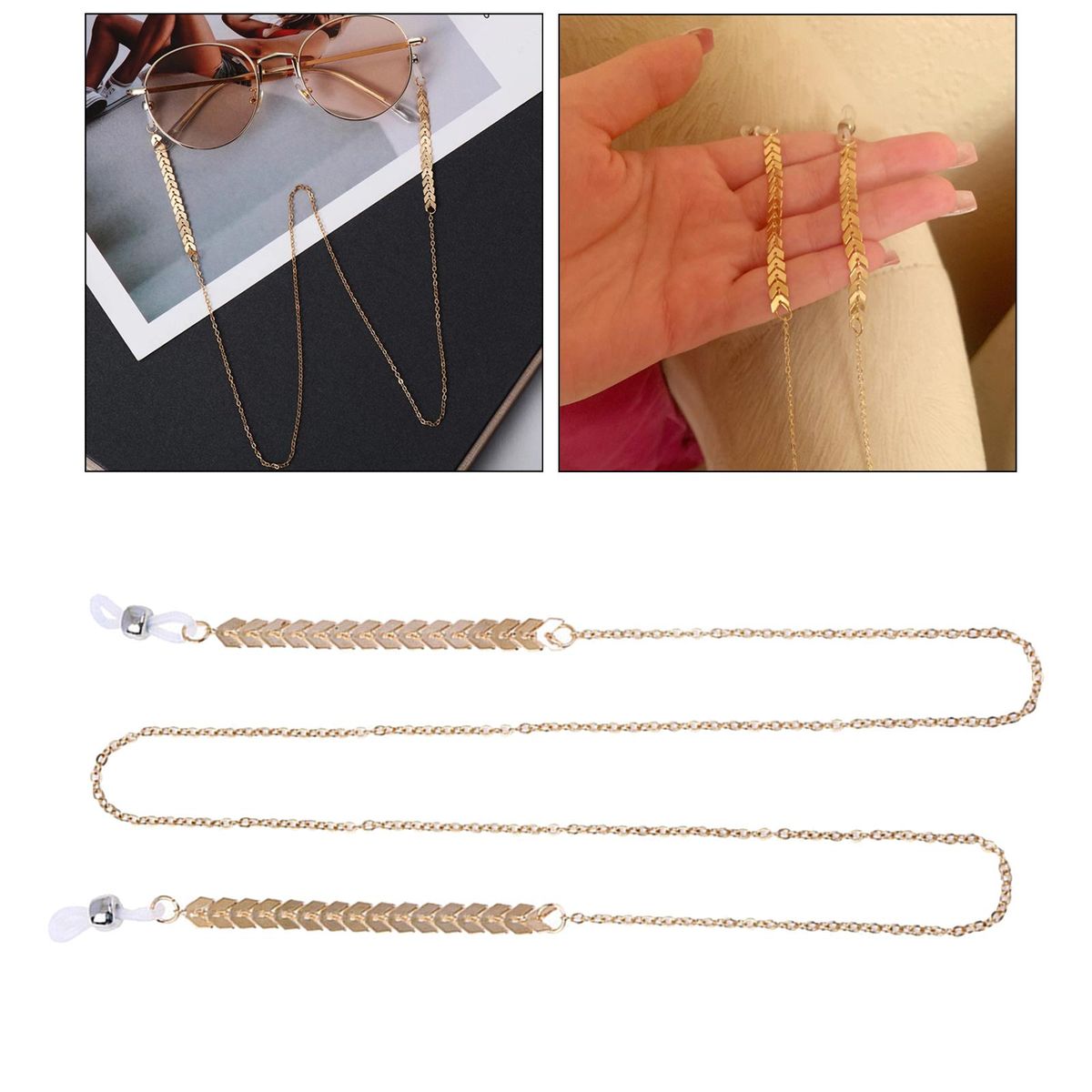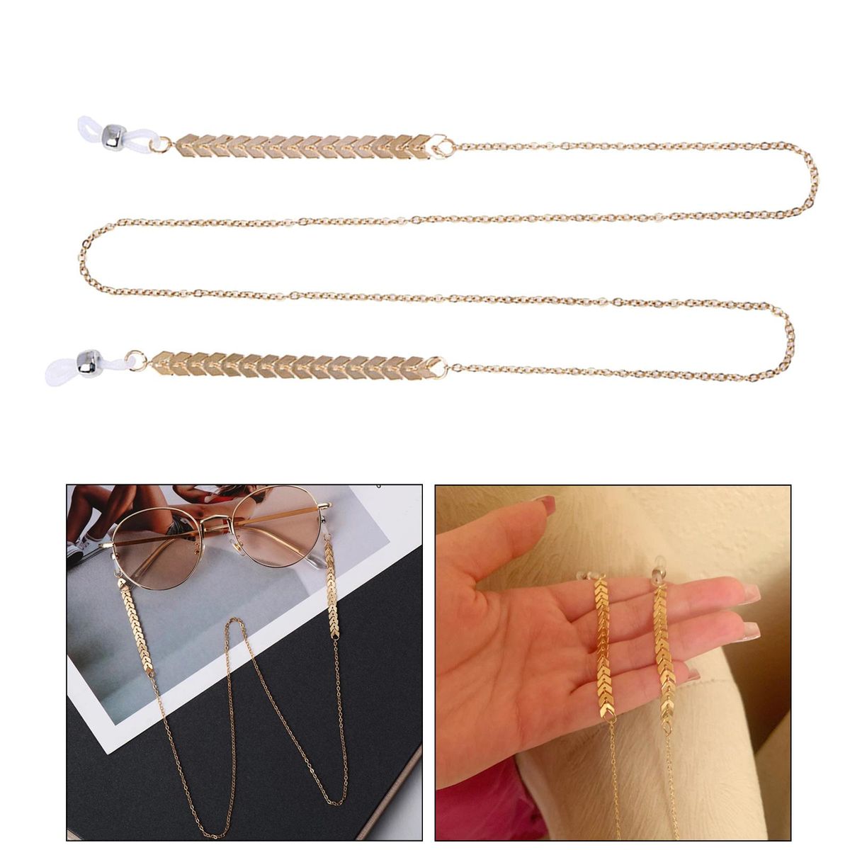 Eyeglass chain with rubber grips,full length about 27.56inch.Elegant fashion and charming eyeglasses chain with Imitation pearl ,make your glasses unusual.Perfect for decorating your reading glasses, eyeglasses and sunglasses.Adjustable rubber grips with silver or gold plated , Easy to install and remove, for convenient to use. Fit for indoor and outdoor activities, Keep your glasses nearby and hold it safely.
