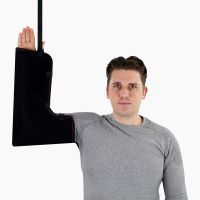 - The design features an extension strap for arm elevation to promote fluid drainage. The length from the elbow to the hand is 46cm.