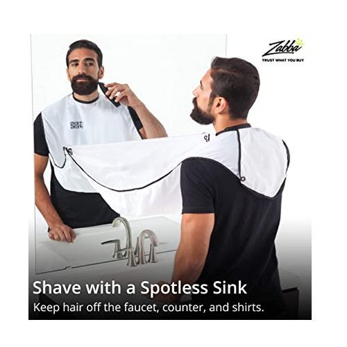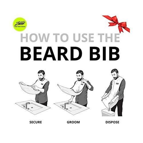 Beard bib beard hair catcher apron, catches your beard, mustache, sideburns, goatee and hair trimmings to allow easy disposal with no clogged drains, and no cleaning, and works with any beard trimmer