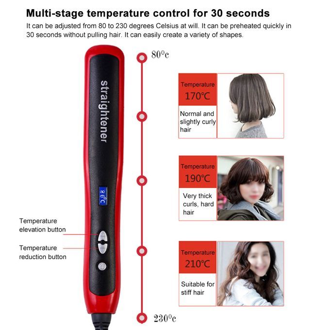Features:A ceramic iron tooth comb protects your hair from hair damage and temperature control. With a temperature display, you can easily grasp the temperature changes.