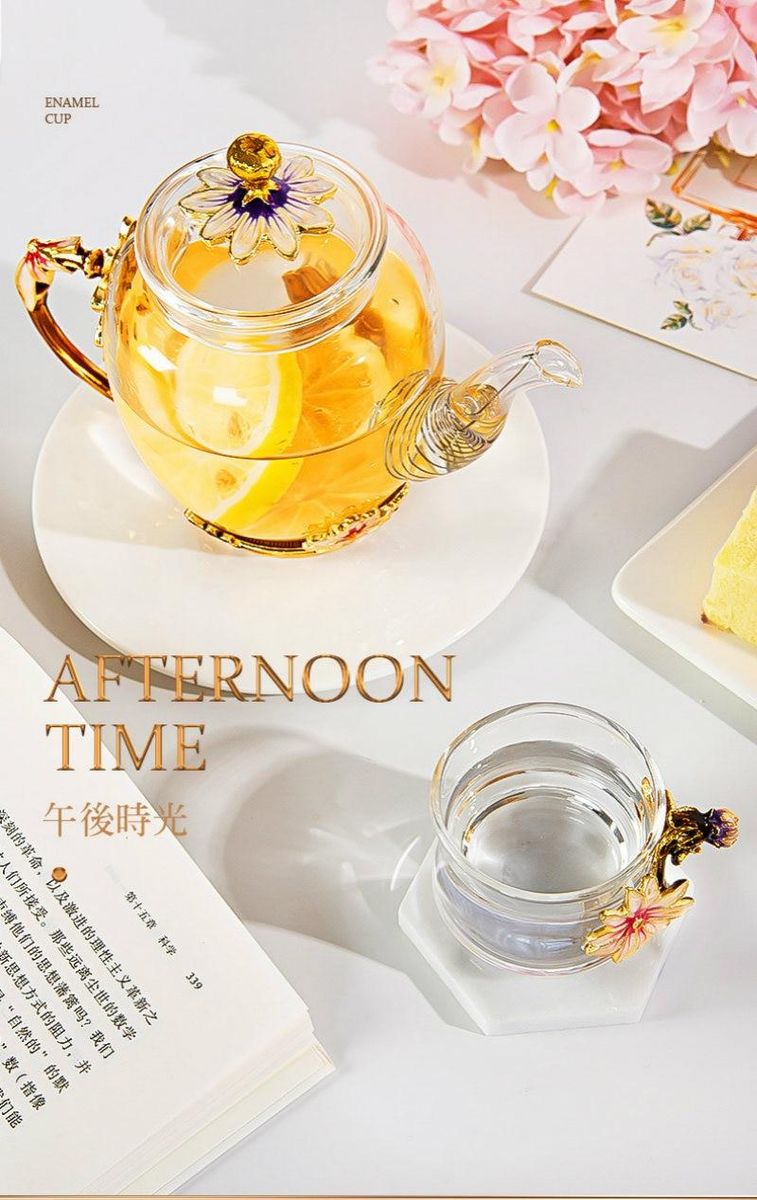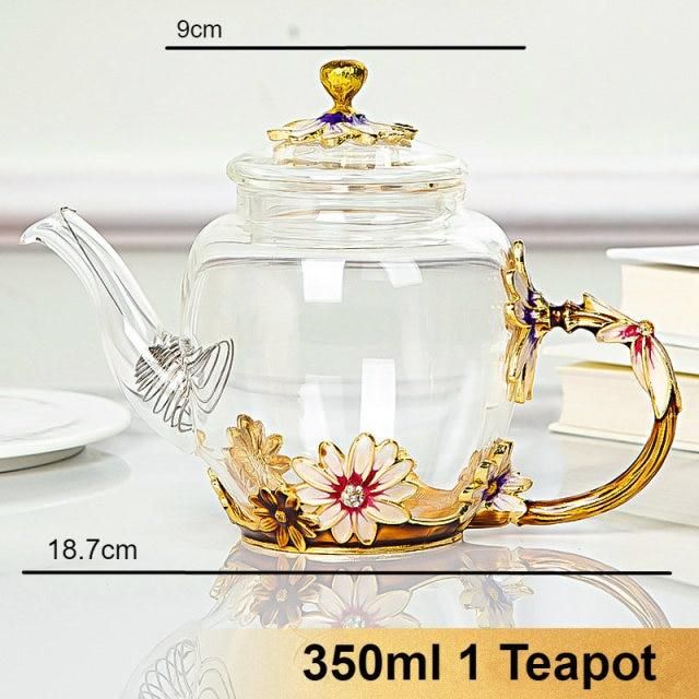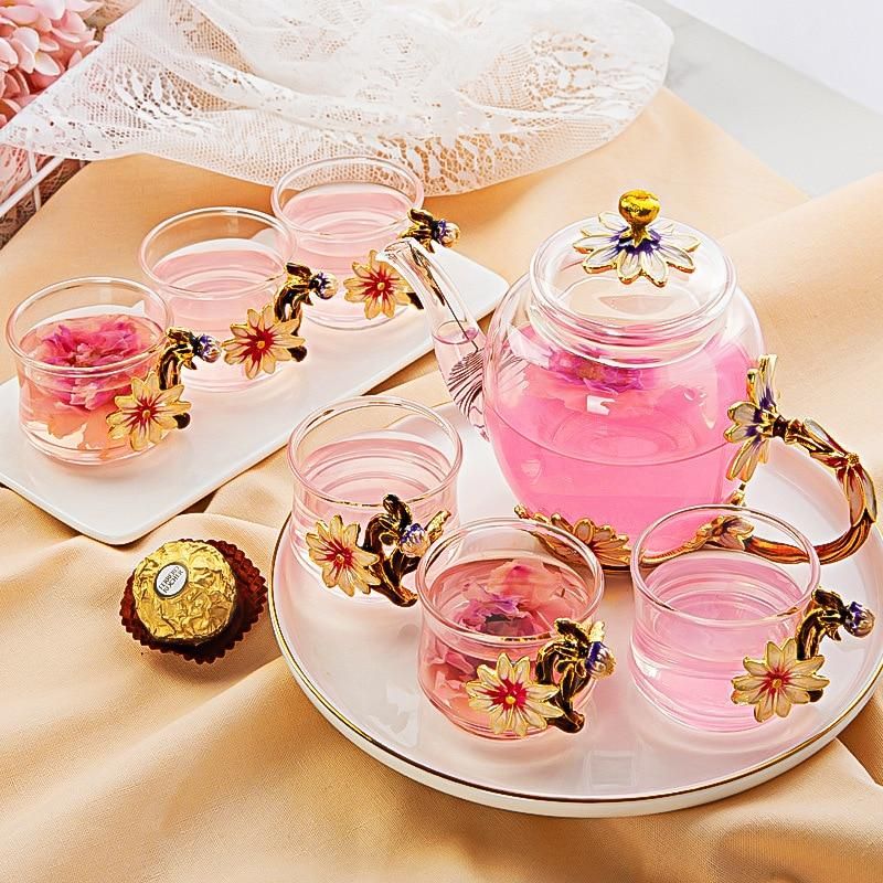 Beautiful Enamel Crystal Tea set daisy Glass Teapot for Hot and Cold Drinks Home Drinkware Office kettle Teaware set coffee pot