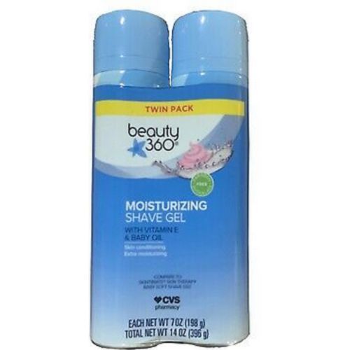 With vitamin E and baby oil. Skin conditioning. Extra moisturizing. Compare to Skintimate Skin Therapy Baby Soft Shave Gel (This product is not manufactured or distributed by Eveready Battery Company, Inc., owner of the registered trademark Skintimate). Beauty 360 Moisturizing Shave Gel softens hair on contact for a close, comfortable shave. Our hydrating formula contains Vitamin E and glycerin to help smooth dry skin while reducing nicks, cuts and irritation. The light pink gel lathers into a thick, white foam with natural moisturizers for relief from tight, dry or even flaky skin. Leaves skin touchably smooth and soft. Contains no CFCs which deplete the ozone layer. Made in the USA with US and foreign parts.