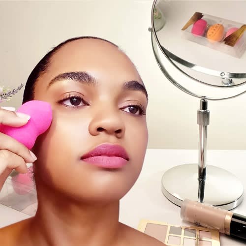 A top-selling makeup sponge, the super-soft, exclusive, latex-free foam quickly blends makeup for an easy application and flawless, skin-like finish. What it does: The unique shape and exclusive material available only with beautyblender & reg; ensures impeccable, streak-free application with minimum product waste.