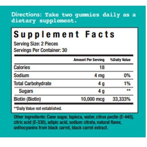 Beauty never tasted so good. Formulated with over 30,000% RDI of biotin, a vitamin that supports hair and nails. These gummy vitamins will improve hair strength and thickness, while also promoting nail strength and growth. This product is vegan friendly.