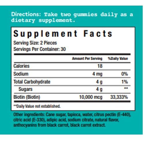 Beauty never tasted so good. Formulated with over 30,000% RDI of biotin, a vitamin that supports hair and nails. These gummy vitamins will improve hair strength and thickness, while also promoting nail strength and growth. This product is vegan friendly.