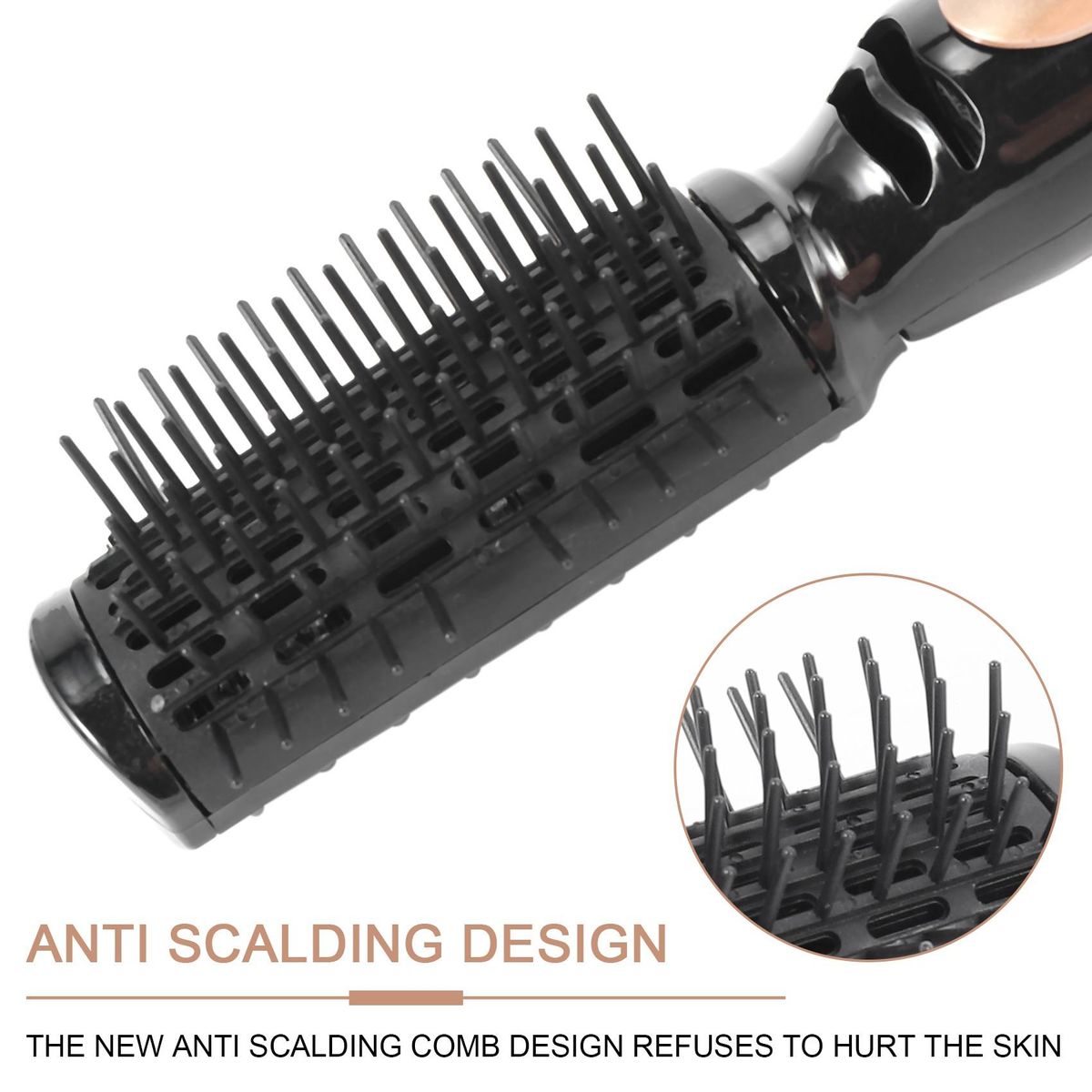 2. Hot air brush is designed with nylon pin & tufted bristles,which prevent your hair from getting tangles.
