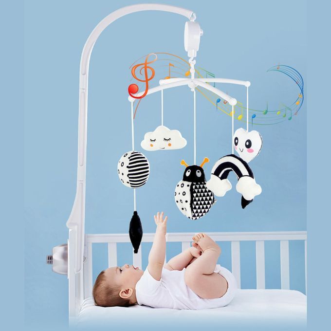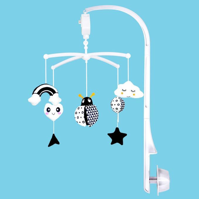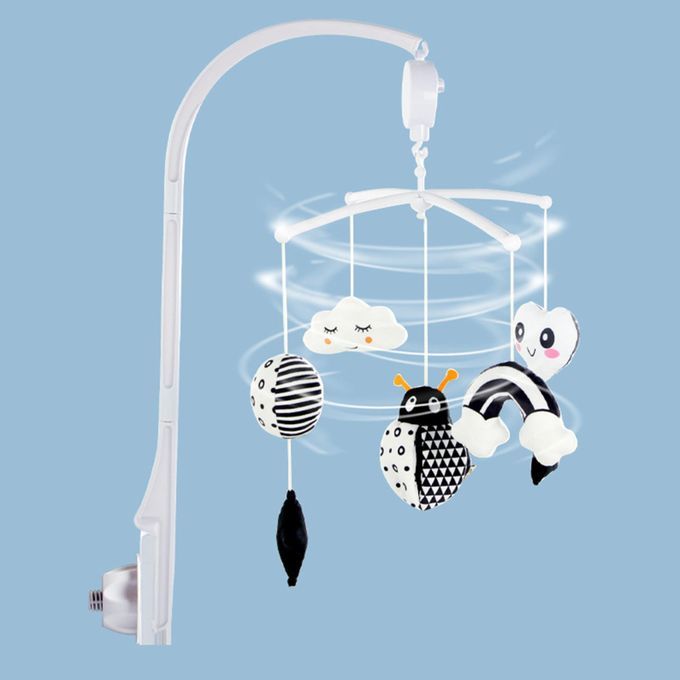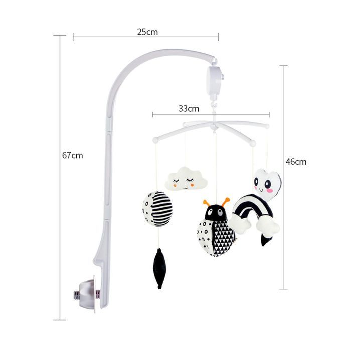 Bed Bell Holder;Bed Bell Toy Music Box Baby Crib Rattles Newborn;Baby Bed Bell Holder Clockwork Toy Infant Baby;Baby Rattle Mobile Crib Toy Bed Hanging Newborn;Black and White Baby Mobile for Crib Detachable;Rotating Mobile Bed Bell Musical Box Hanging Toy