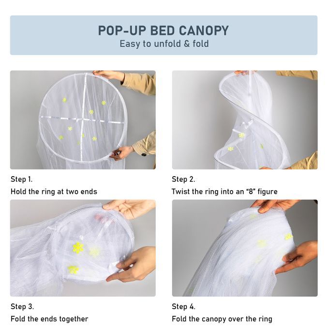 INSECT AND MOSQUITO RESISTANT: Single-opening design with fine&tiny holes effectively keeps mosquitoes and other insects out. Farewell to harsh chemical-repellents, and let our bed canopy gives you a safe&calm sleeping.
