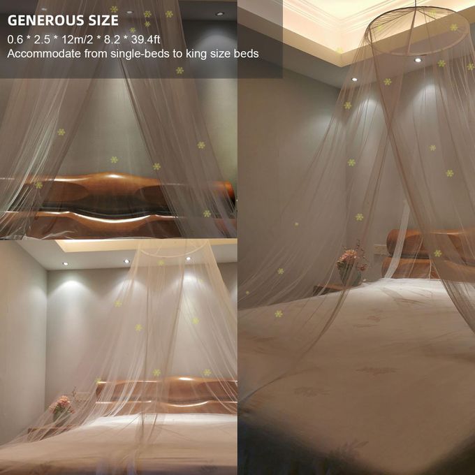 FULL-COVERAGE: The generous amount of netting with a size of 0.6 * 2.5 * 12m/2 * 8.2 * 39.4ft can perfectly accommodate from single-beds to king size beds as well as toddler beds, sofas, etc.